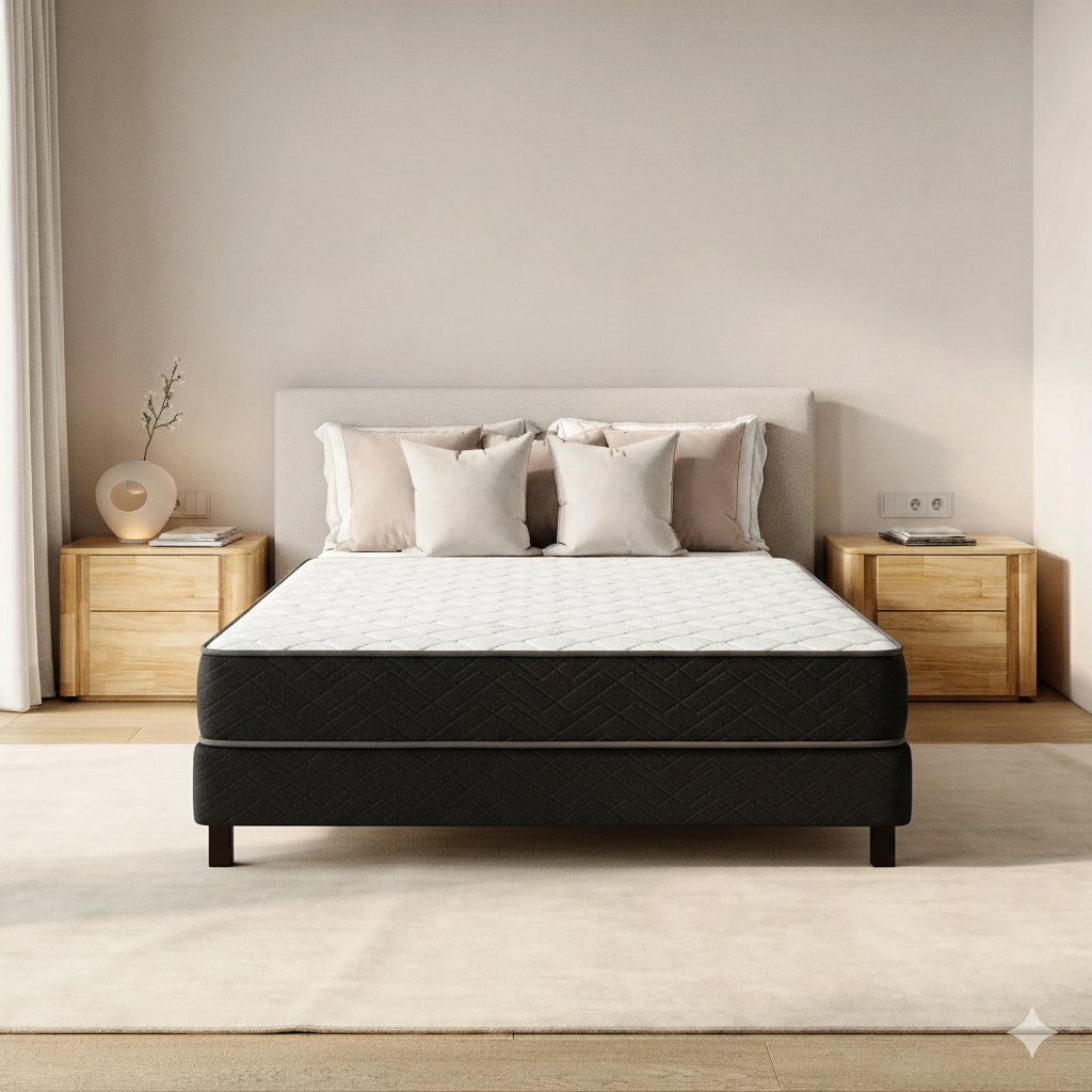 Tu nueva cama cuenta con un acolchado perimetral de alta densidad que añade volumen y mejora la presencia visual del dormitorio, reemplazando líneas rígidas por una terminación más limpia y contemporánea.